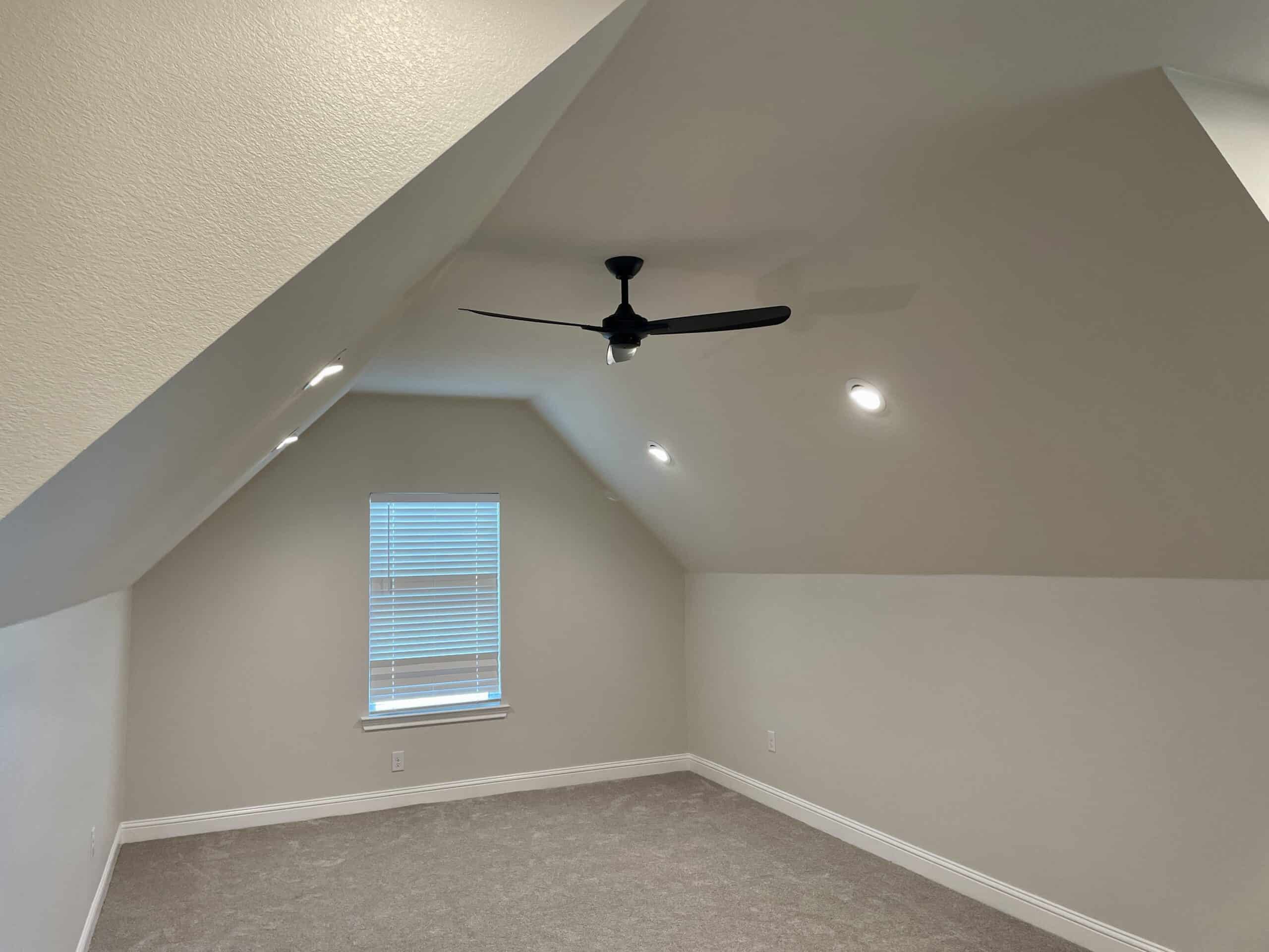 Vaulted master bedroom ceiling.