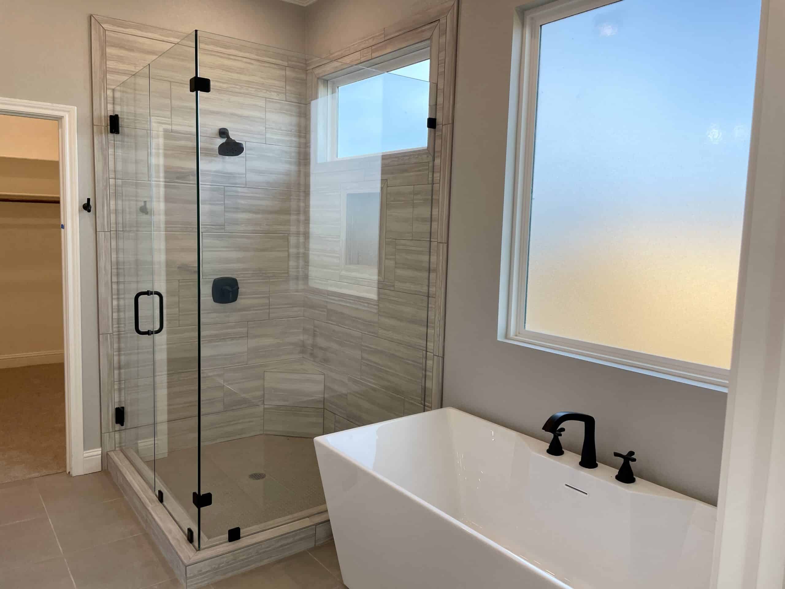 Master bedroom downstairs with a spacious bathroom and closet suite.